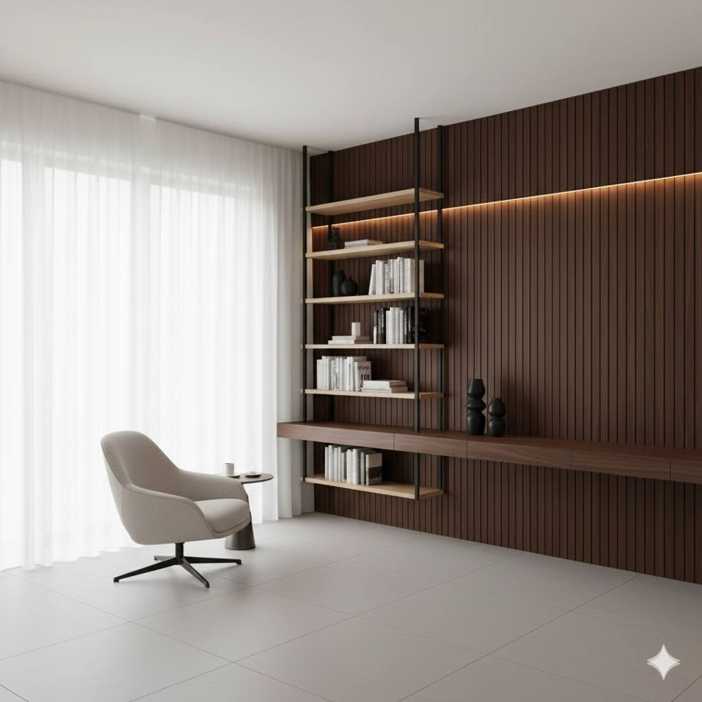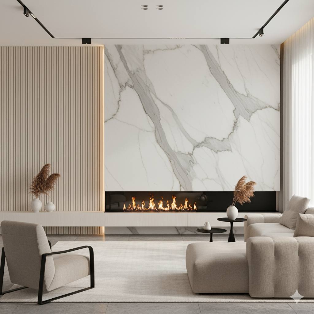 Modern Wall Design: Combining PVC Marble Sheets and MDF Acoustic Panels