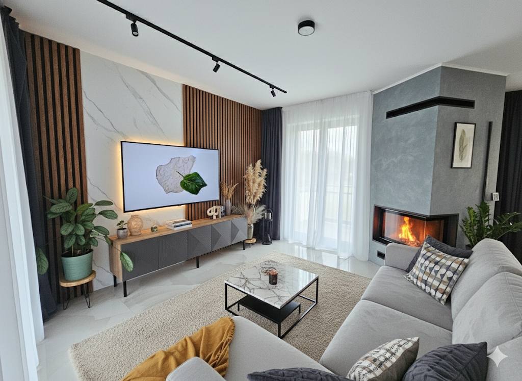 Modern Wall Design: Combining PVC Marble Sheets and MDF Acoustic Panels