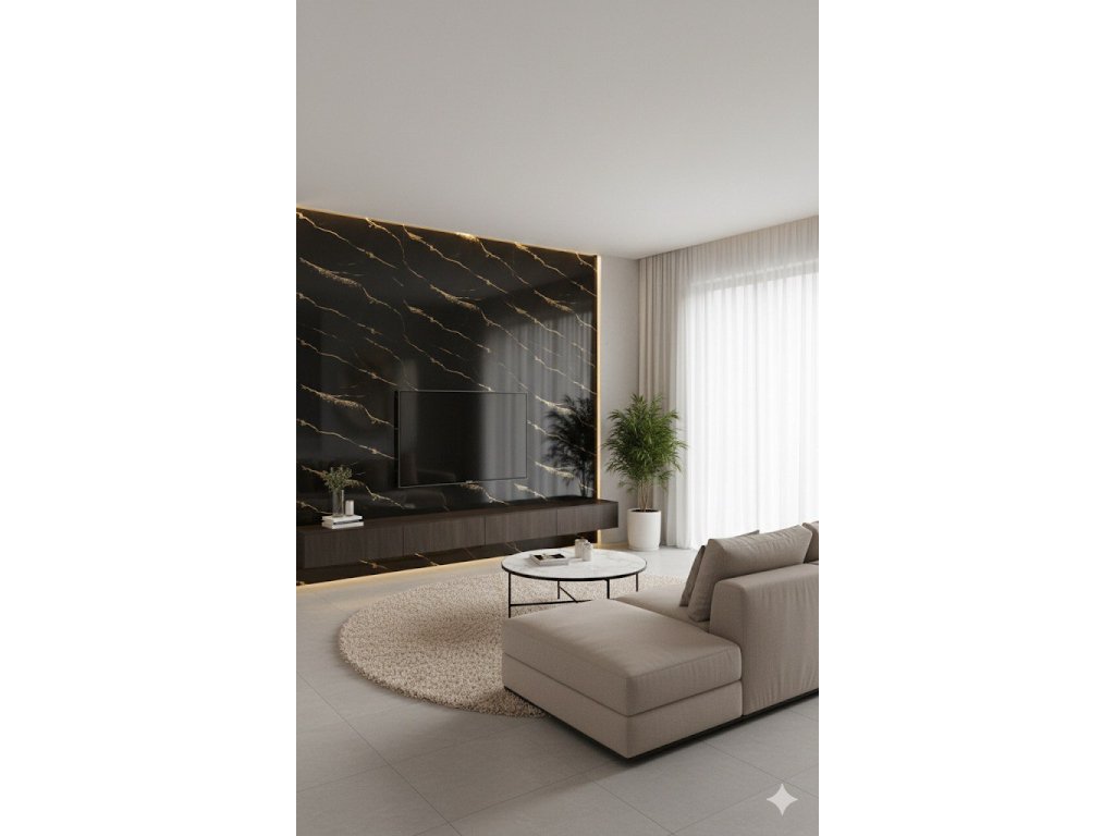 VZ-NEW-04 (Gold Vein): Ideal for interiors dominated by warm colours, brass or gold accents, or dark wood furniture. It creates an opulent, baroque, and dramatic sense of luxury. VZ-NEW-03 (White Vein): This panel is cleaner and more minimalist. It pairs perfectly with silver/chrome accessories and lighter elements. It is the modern, Nordic-cooler alternative.